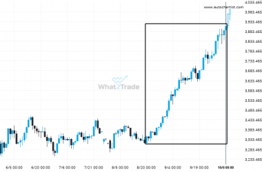 Triangle pattern identified on Brent Crude has broken through a resistance level with the price momentum continuing to…