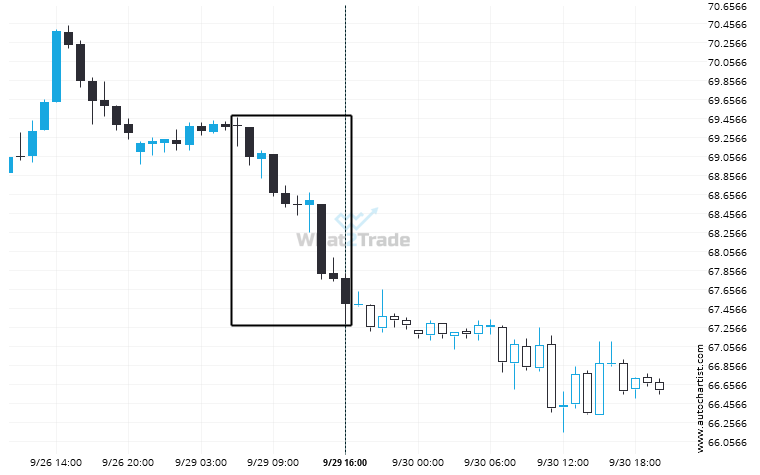 An unexpected large move occurred on US Oil 1 hour chart, starting at 65.5195 and reaching 63.2685. It…
