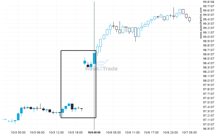 AUDJPY reached 98.6335 after a 1.31% move spanning 3 days.