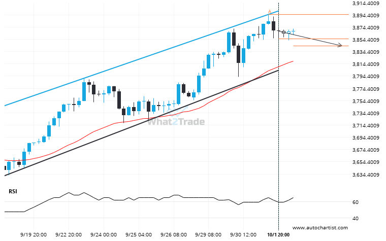 Gold Spot is moving towards a support line. Because we have seen it retrace from this line before, we could see either a break through this line, or a rebound back to current levels. It has touched this line numerous times in the last 16 days and may test it again within the next 3 days.