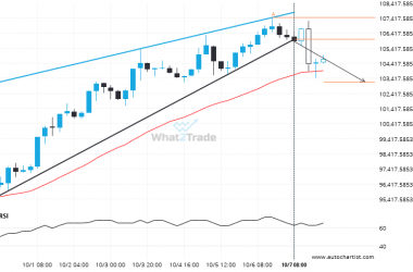 Rising Wedge pattern identified on BTCEUR has broken through a support level with the price momentum continuing to…