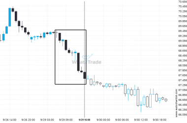 An unexpected large move occurred on Brent Crude 1 hour chart. The shift stands out in recent activity.