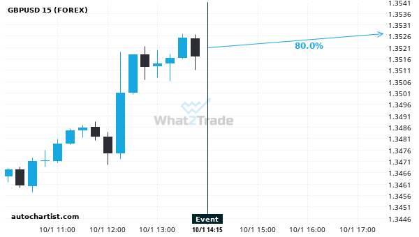 Based on the last 12 ISM Manufacturing PMI events in United States, we could see a $430 movement on GBPUSD within the next 4 hours. GBPUSD could trend upwards for the next 4 hours because the released value is > 49