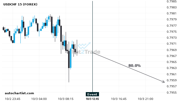 Based on the last 12 Non Farm Payrolls events in United States, we expect a $790 movement on USDCHF within 12 hours following the event release at 2025-10-03 12:30. We expect USDCHF to trend downwards 12 hours following the event release at 2025-10-03 12:30 if the released value is < 50K Historical events that allowed us to draw this conclusion