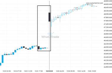 JPN225 is moving towards a resistance line. Because we have seen it retrace from this level in the past, we could see either a break through this line, or a rebound back to current levels. It has touched this line numerous times in the last 4 days and may test it again within the next 18 hours.