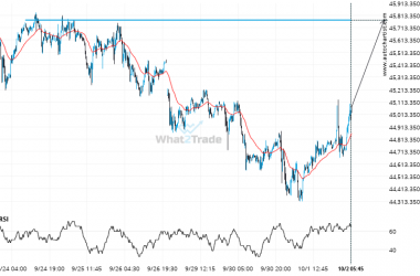 A strong resistance level has been identified at 45777.0000 on the 15 Minutes Nikkei 225 chart. Nikkei 225…