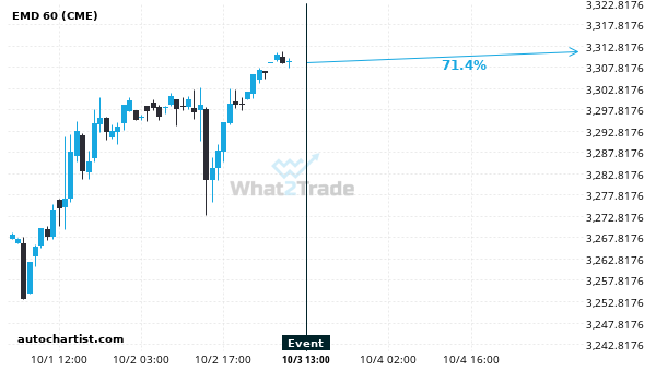 We expect EMD to trend upwards today with a 71.43% chance.
