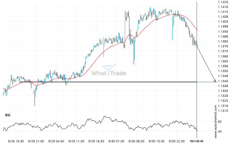AUDNZD is heading towards a line of 1.1342. If this movement continues, the price of AUDNZD could test 1.1342 within the next 15 hours. But don’t be so quick to trade, it has tested this line numerous times in the past, so this movement could be short-lived and end up rebounding.
