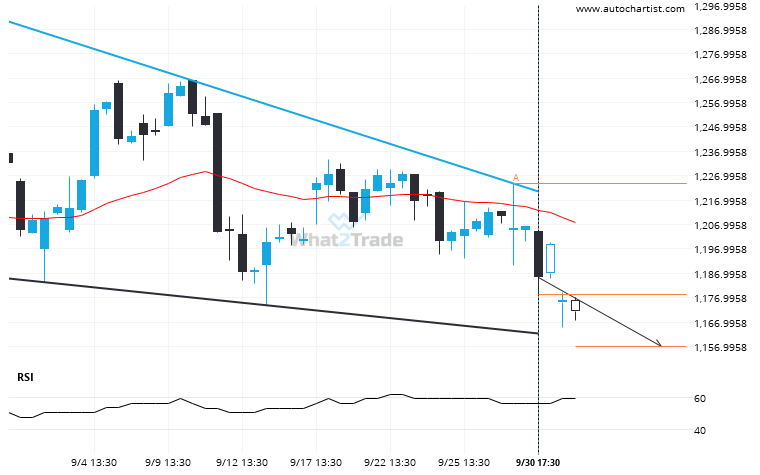 A Falling Wedge pattern was identified on NFLX at 1178.335, creating an expectation that it may move to the support line at 1156.8978. It may break through that line and continue the bearish trend or it may reverse from that line.