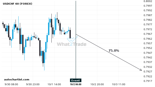 Based on the last 12 Consumer Confidence events in Japan, we expect a $1306 movement on USDCHF within 48 hours following the event release at 2025-10-02 05:00. We expect USDCHF to trend downwards 48 hours following the event release at 2025-10-02 05:00 if the released value is > 35.2