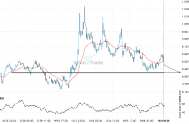 XRPUSD has broken through a support line. Because we have seen it retrace from this price in the past, one should wait for confirmation of the breakout before trading. It has touched this line numerous times in the last 3 days and suggests a possible target level to be around 0.3858 within the next 14 hours.